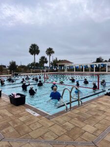 Without sounding judgy, I was struck by how fit, active, and genuinely joyful people seemed. HWP! Not a lot of wheelchairs or walkers. Just smiling, social, engaged people — like summer camp for grown-ups. The gender split is 55% women and 45% men, and most residents are married (72%), though I did find myself casually flashing my wedding ring a couple times. Flattered, sure, but no thank you. What color pool noodle is that?